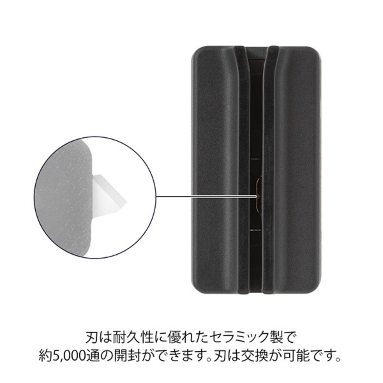 背面に強力マグネットが内蔵されているため、マグネットがつく壁面に固定させたままでも使用することができるレターカッターです。本体の溝に封筒をはさんでスライドさせるだけで、開けにくい厚みのある封筒や角潰れなどでもストレスなく簡単に開封ができます