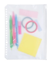 書類やルーズリーフと一緒に小物や関連書類を収納できる。 持ち運ぶときにも中身が落ちない、ファスナー付き。 ■サイズ:A5/20穴