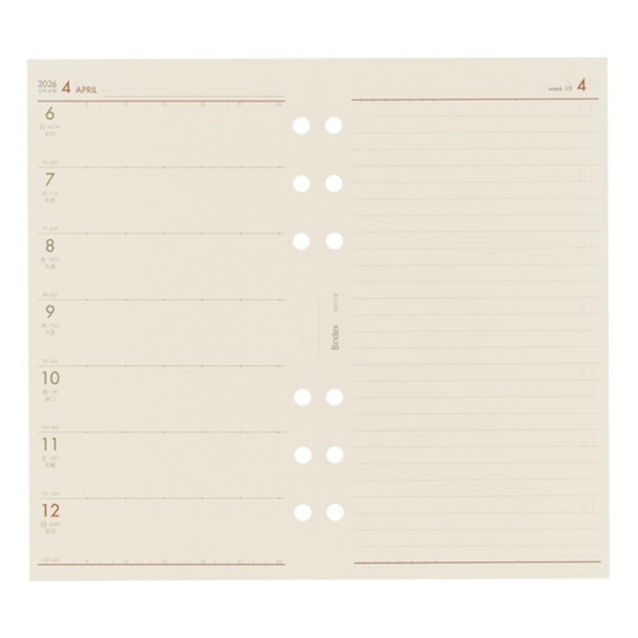 能率手帳の会社がつくるシステム手帳ブランドBindex by NOLTY (バインデックス バイ ノルティ)のリフィル(バイブルサイズ)。
