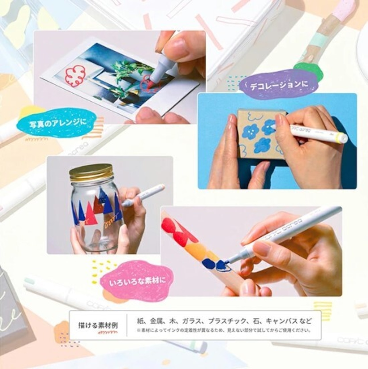 水性の不透明カラーマーカーで、重ね描きや紙以外の素材への着彩もOK。