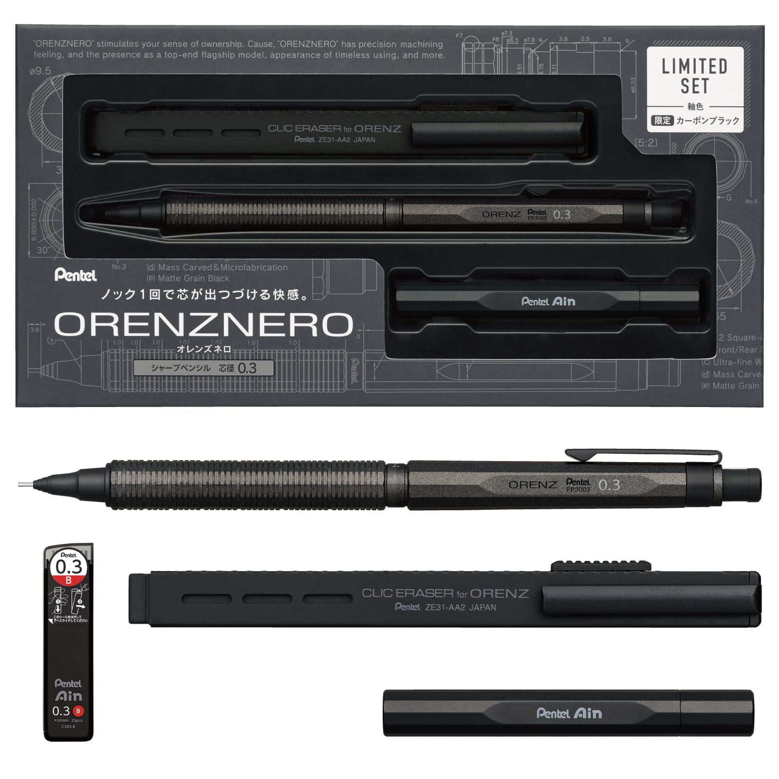 特製の替芯ケースとホルダー式消しゴムセット