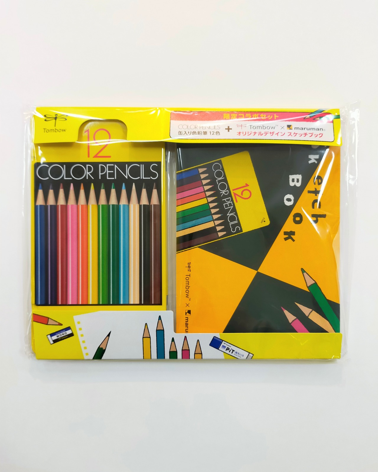 缶入り色鉛筆12色にオリジナルスケッチブックが付いてきます!